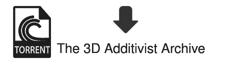 The 3D Additivist Archive (torrent / 6gb) contains 3D .obj and .stl files, templates, toolkits, and (im)practical designs for living in this most contradictory of times.